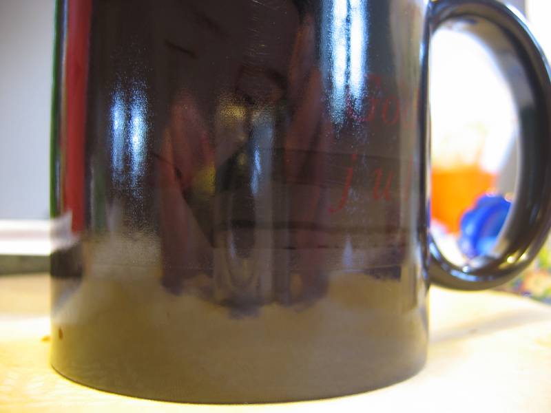 Review: The cup is not quite as plain black as you wish for. The victim might start twigging something.